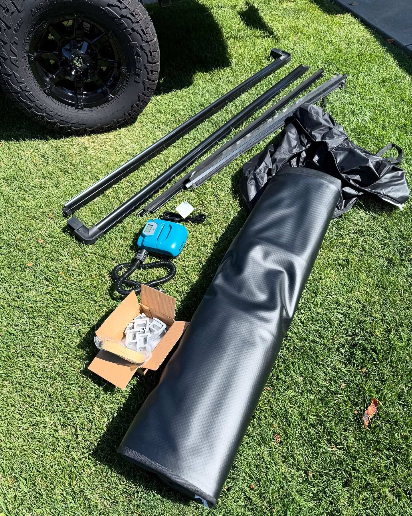 Sets up just as fast solo with the included electric pump, stays bone-dry and rock-solid at 80mph through heavy rain thanks to our rail-seal and clamp system